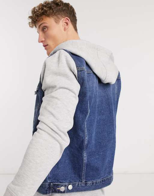Product Name: Blue jersey hoodie denim jacket on sale