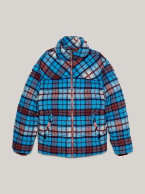 Product Name: Blue plaid puffer jacket on sale