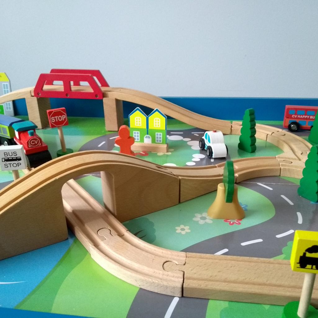 Product Name: Chad valley wooden table and 90 piece train set on sale