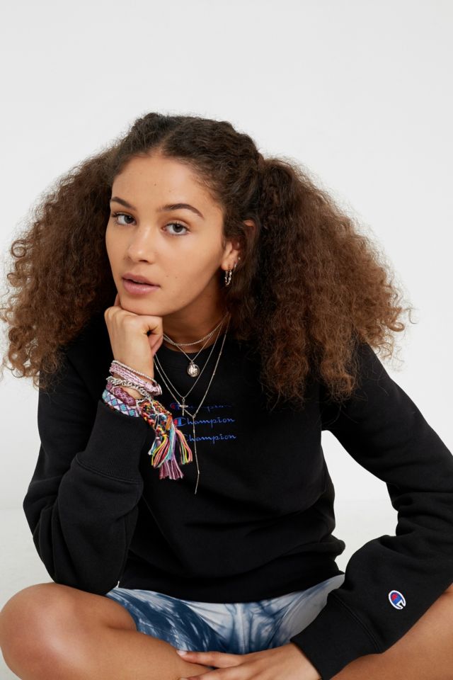 Product Name: Champion uo exclusive small script black crew neck sweatshirt on sale