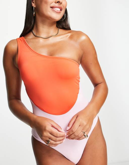 Product Name: Color block one shoulder swimsuit on sale