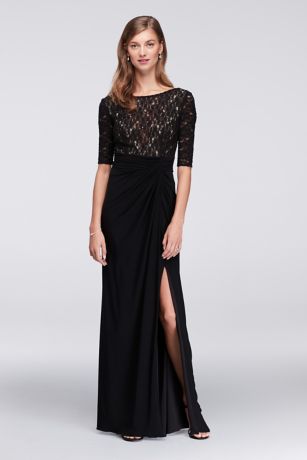 Product Name: Gathered jersey dress with scalloped lace bodice on sale