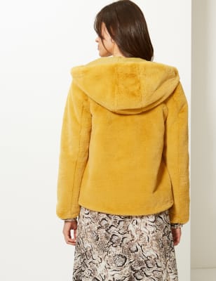 Product Name: Mustard faux fur hooded coat on sale