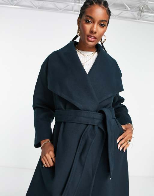 Product Name: Navy belted wrap coat on sale