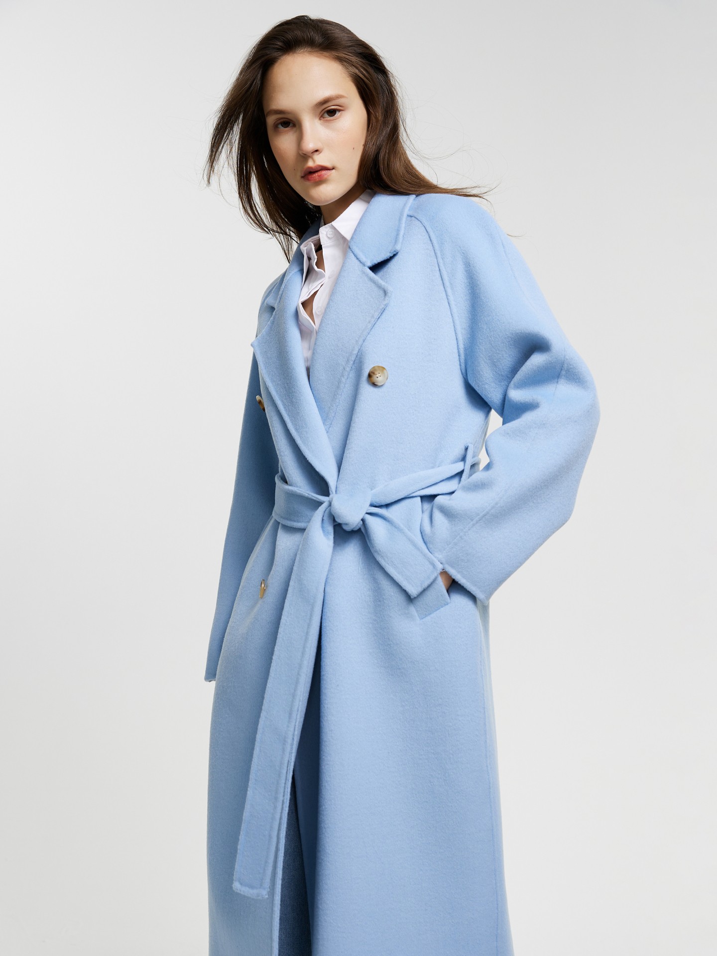 Product Name: Pale blue wool coat on sale