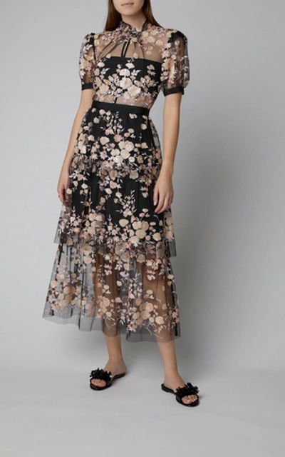 Product Name: Self portrait floral embroidered mesh midi dress on sale