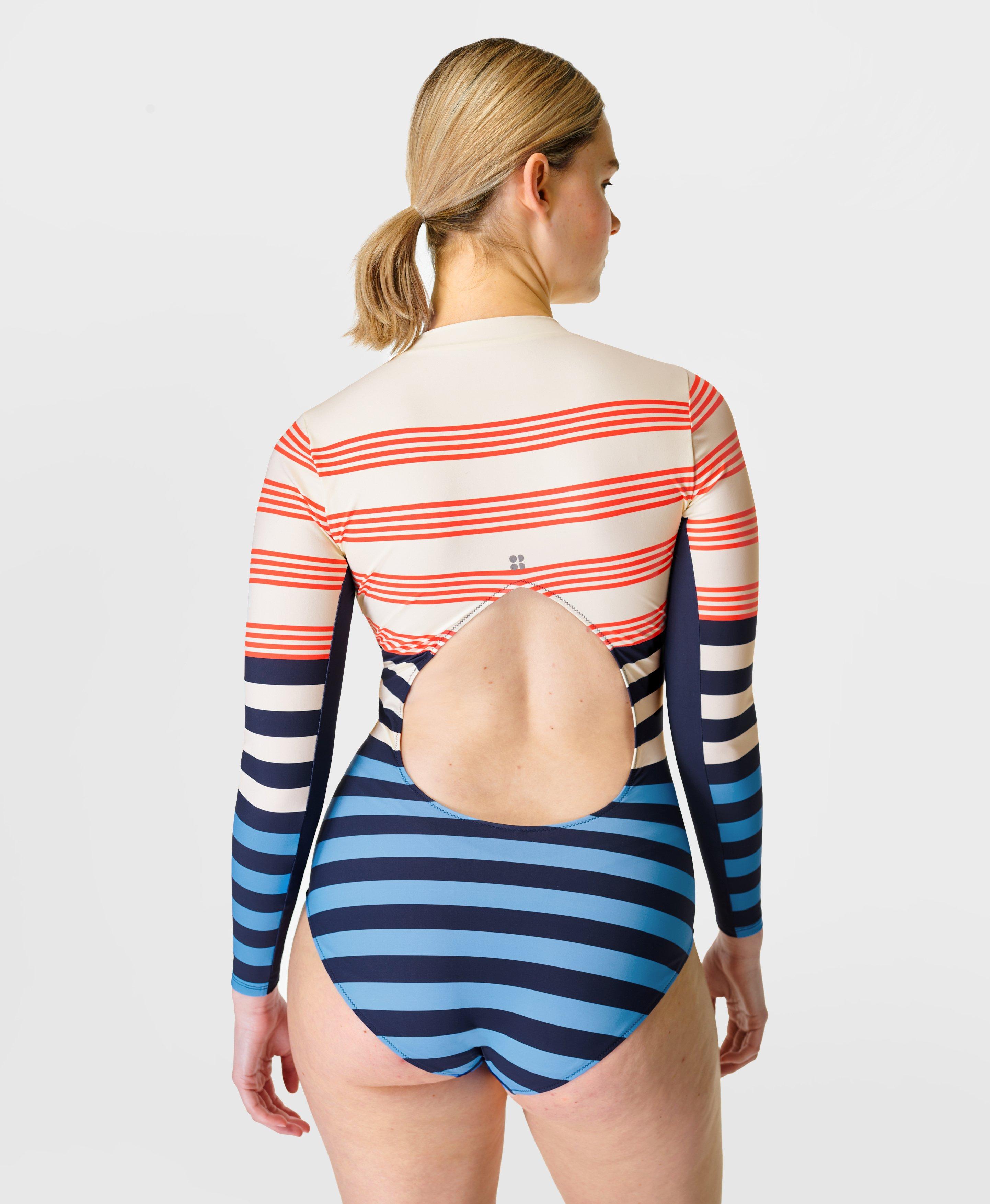 Product Name: Striped long sleeve swimsuit on sale