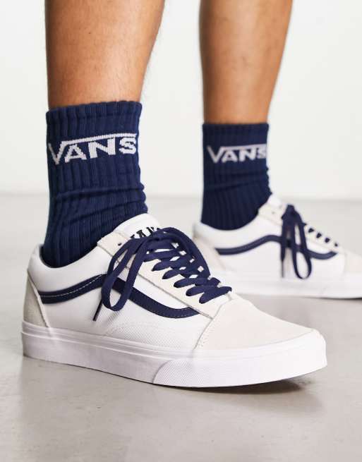 Product Name: White high top vans with blue stripe on sale