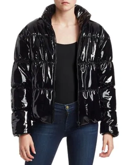 Product Name: Black patent leather puffer jacket on sale
