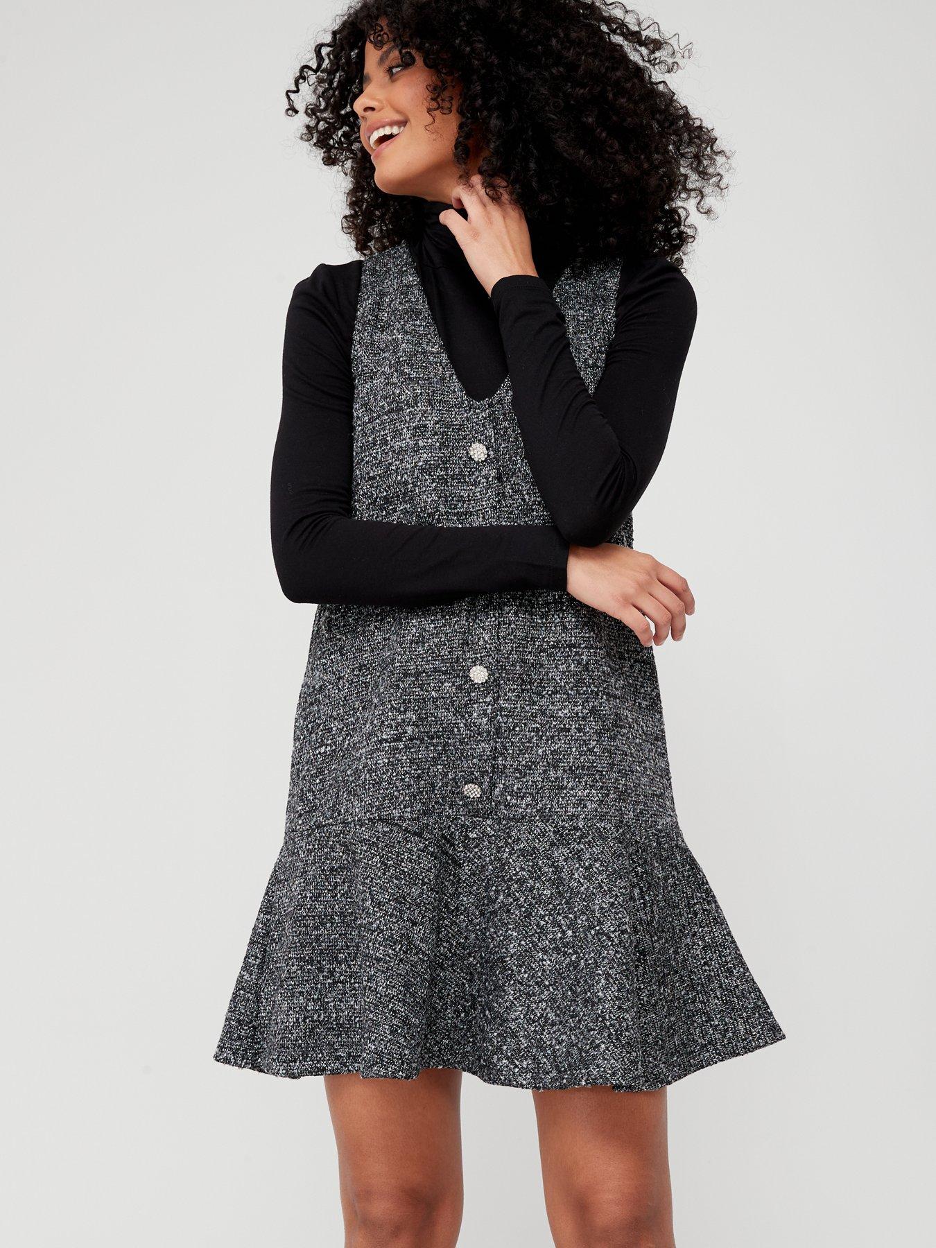 Product Name: Black jersey pinafore dress on sale